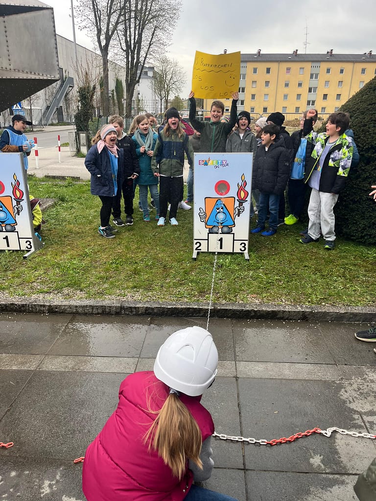 Am Programm standen spannende Stationen: das Erkennen verschiedener Gefahrensymbole, knifflige Sicherheitsfragen beim Safety-Quiz, ein Löschbewerb sowie ein Sicherheitsparcours mit dem Scooter.